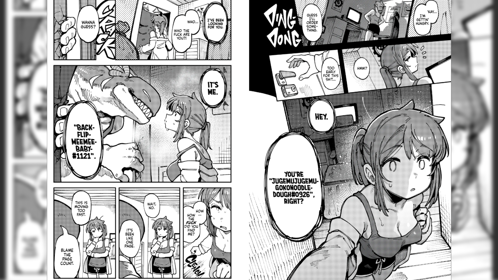 JugemujugemugokoNoodleDough#0926 (if you say that six times at 3 A.M. next to a horse, you'll pull Kitasan in Umamusume: Pretty Derby) is, as the kids say, a troll. The good-for-nothing (albeit wonderfully エロっぽい/eroppoi) NEET spends all her time sitting in front of her computer and dissing noobs. But one day, she pisses off the wrong noob by insulting his mother and taunts him by telling him that he's free to fuck her if he finds her address. The noob she insulted took that as a challenge!